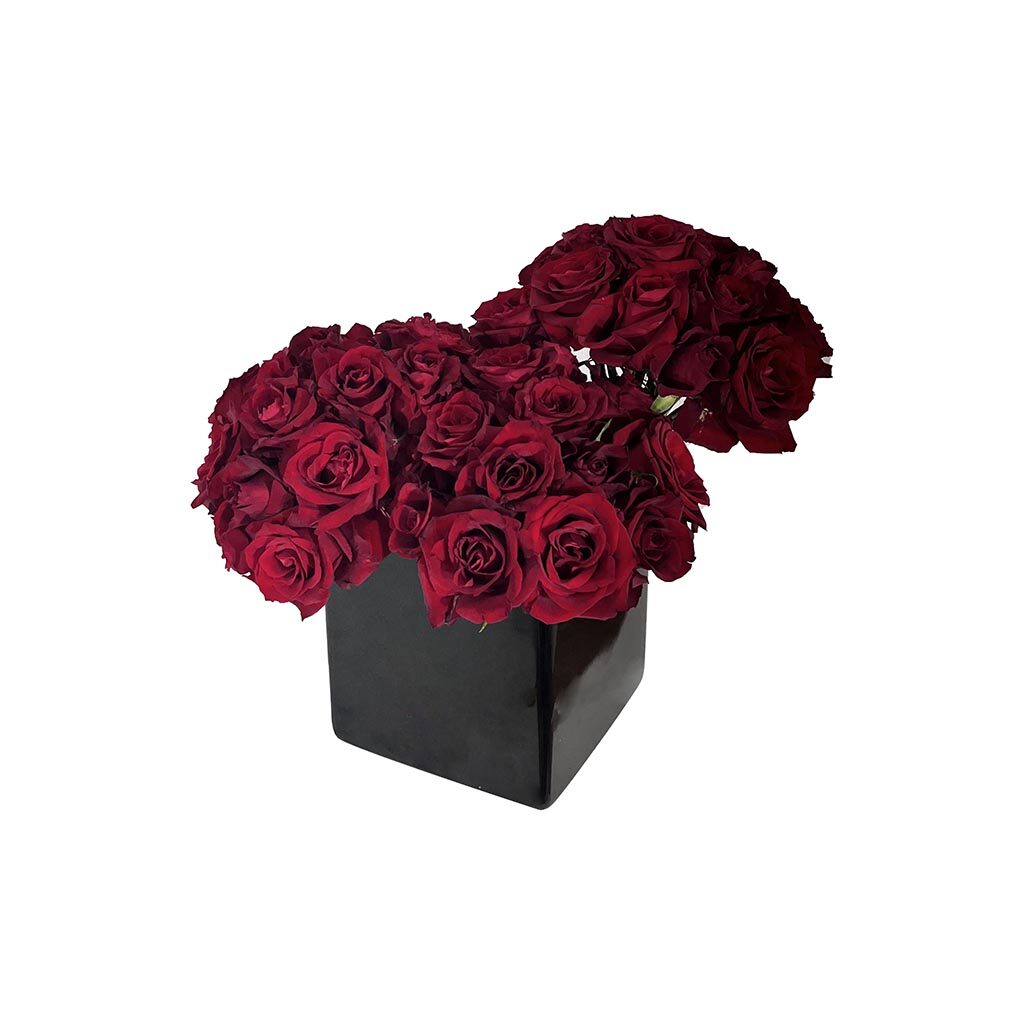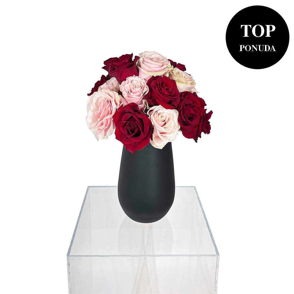 Buket od 10 crvenih i 10 rozih ruža postavljen u crnoj vazi.